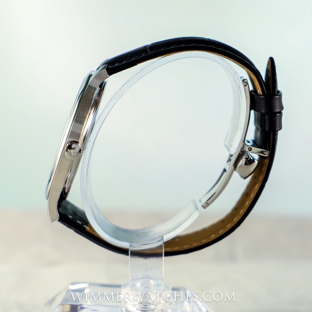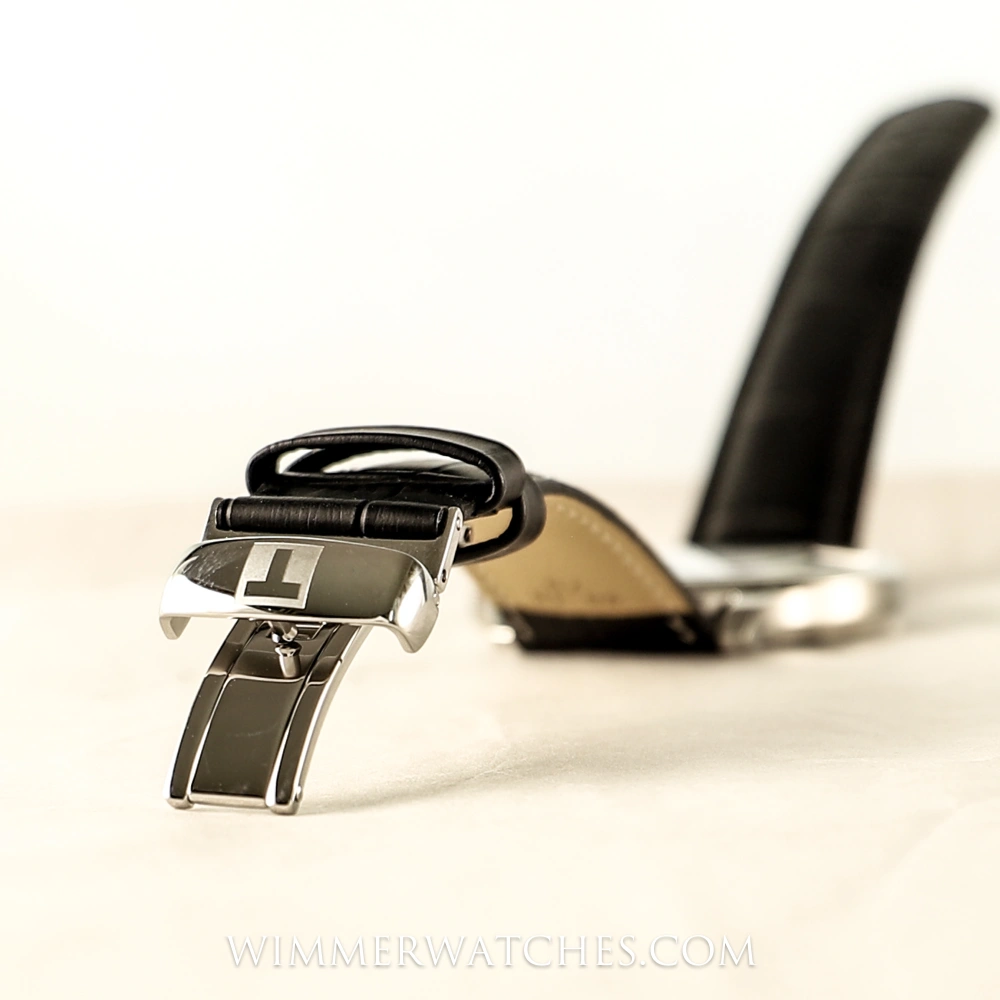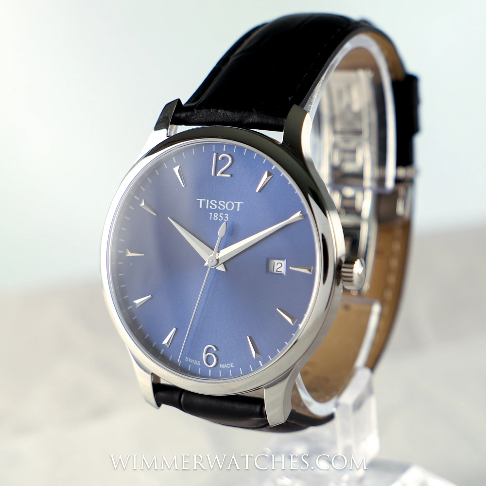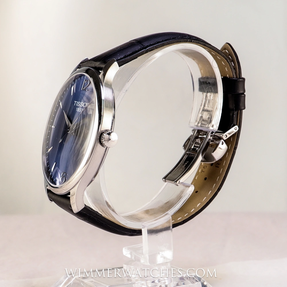 Die Tissot Tradition Herrenarmbanduhr T063.610.16.047.00 vereint modernen Uhrmacherstandard mit klassischem Vintage-Charme. Das 42 mm große Edelstahlgehäuse wird durch ein gewölbtes, kratzfestes Saphirglas geschützt und sorgt zusammen mit dem tiefblauen Zifferblatt und arabischen Ziffern für ein elegantes Erscheinungsbild. Angetrieben von einem präzisen Swiss Made Quarzwerk mit Batterie-Endanzeige (EOL) bietet die Uhr Zuverlässigkeit und Präzision. Ein schwarzes Lederarmband im Alligator-Stil mit Butterfly-Faltschließe rundet den zeitlosen Look dieser Herrenuhr ab. Wasserdicht bis 30 Meter.