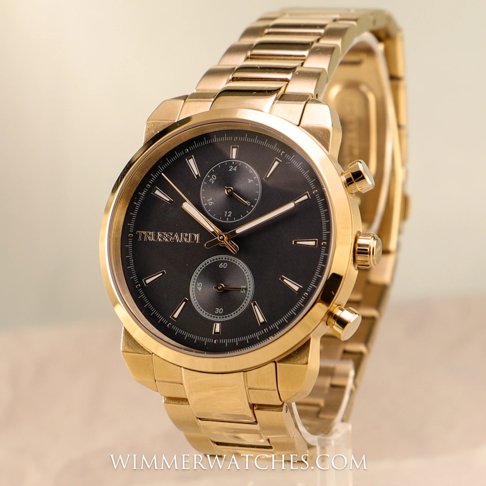 Trussardi Herrenarmbanduhr R2453154001 – Edelstahlgehäuse und goldfarbenes Armband